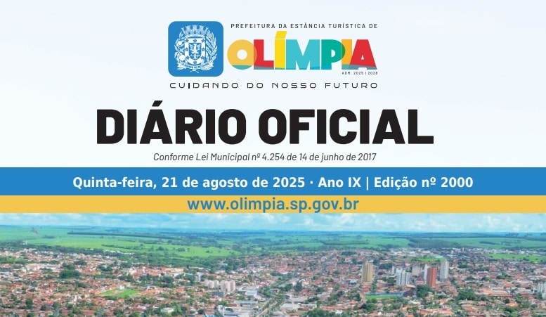 O que é o Diário Oficial Eletrônico de Olímpia? É uma plataforma digital da prefeitura para divulgar atos oficiais de forma rápida e transparente, lançada em junho de 2017.