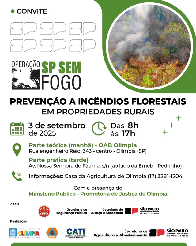 Quando e onde ocorre a ação de prevenção a queimadas em Olímpia? O evento é em 3 de setembro de 2025, com teoria na OAB (Rua Engenheiro Reid, 343) pela manhã e prática na Av. Nossa Senhora de Fátima à tarde.
